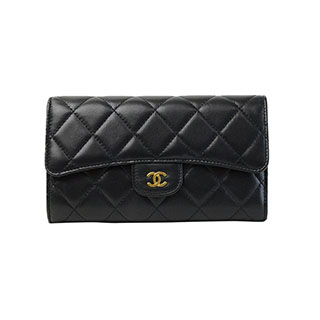 CHANEL:シャネル 2015年春夏新作 マトラッセ三つ折り長財布 ブラック(ゴールドロゴ)