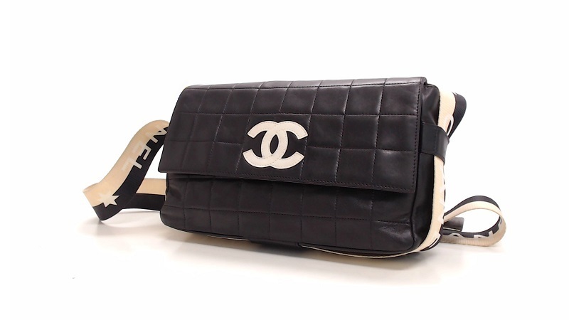 1円美品☆シャネル☆スポーツライン ラムスキン チョコバー ショルダーバッグ 黒×白×アイボリー G金具【CHANEL】 ストア